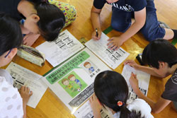グループワークの様子。インターネットに詳しい児童には、あまり詳しくない児童をフォローしながら作業をしてもらいます。