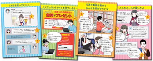 「安全にインターネット」編の授業は、児童の心身に危害を及ぼすおそれのある犯罪やトラブルの未然防止に指導内容を絞った「アクティブ・ラーニング型」の授業となっています。また、児童に楽しく積極的に課題に取り組んでもらえるよう、「ゲーミフィケーション」の要素がワークシートに施されています。