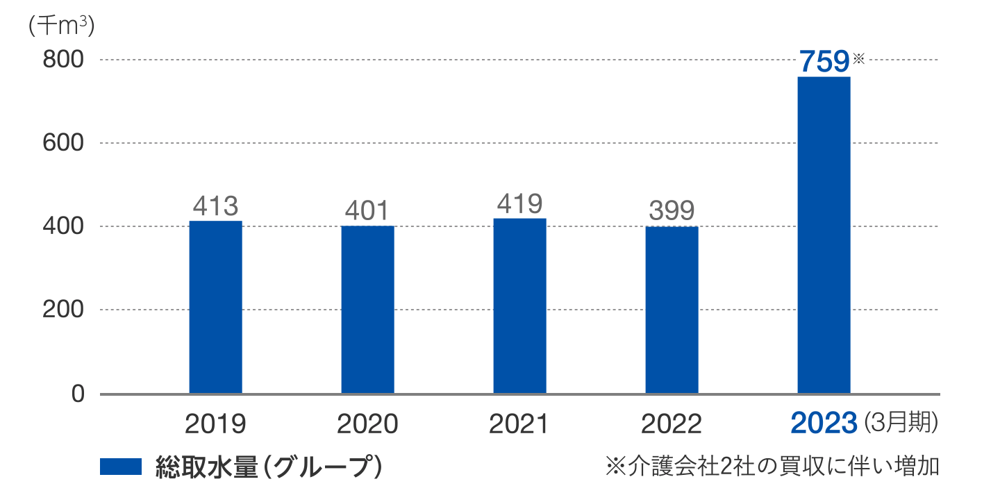 水使用量(総取水量)の推移(千m3・グループ全体)