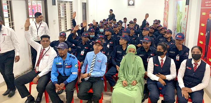 バングラデシュでは、国民の9割がイスラム教徒であることから、1日5回の礼拝時間の確保や約1カ月にわたる断食期間時の勤務調整など、現地スタッフに対する宗教的な配慮を行うとともに、24時間「穴を空けない」警備サービスを提供するためには、警備員の相互協力が必要であることを事前に説明しています。