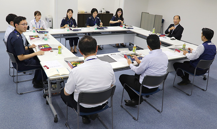 働きやすい職場づくりには社内のコミュニケーションが重要です。ALSOKは、経営層と社員が双方向に意見交換を行うことができる場を設け、社内の活性化を図っています。例年「ES(社員満足)懇談会」を年100回程度開催しており、人事総括担当役員、人事部長または地域本部長が座長となり、参加した社員からの問題提起や意見を会社が汲み上げるとともに、社員自らも、会社の制度、方針等に関する理解を深められる機会となっています。なお、提案された意見・要望は社内施策などに活用されています。