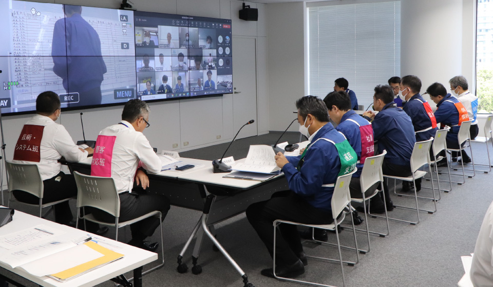 災害発生時の連携強化と対応力の向上を目的に総合防災訓練を年2回(3月11日・9月1日)実施しています。災害対策本部の設置、各責任者による被災状況の情報収集やお客様への対応、社員の安否確認といった一連の流れを訓練し、事業所およびグループ会社との連携と災害対応力の向上に努めています。海外の現地法人においては、各国で災害が発生した際の現地法人から本社海外事業部への報告体制を強化しました。