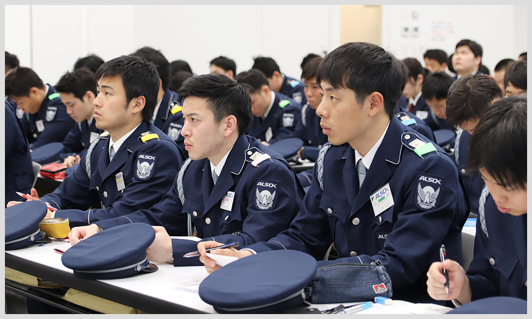 警備会社 ALSOKならではの研修方法で、社会人経験がない社員に、基礎力を一から教育します。