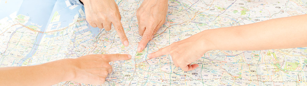 地図の大きさは畳2枚程度が目安です。テーマに応じて地図の種類や縮尺を選びましょう。