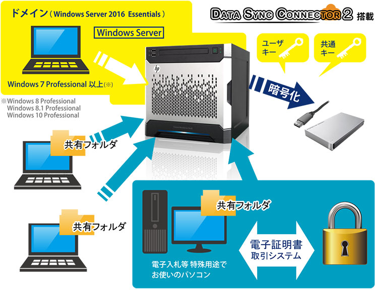 Windows Server 2016 Essentialsサポート外になったWindows XPや、ドメイン(Windows Server 2016のワークグループ)に対応できないホームユースOS(HomePremium等)また、金融取引や電子証明書を使うような特殊環境でも効果的にバックアップすることが可能です。