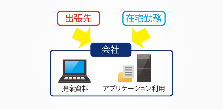 サーバーと同じネットワーク接続されていない場合でも、インターネットを介して自社に設置したサーバー内のデータにアクセスできます。