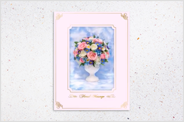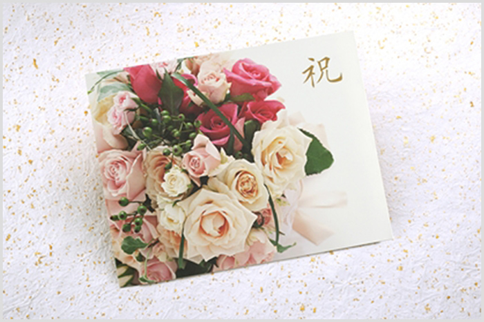 表にも裏にもバラのブーケをデザインした鮮やかな美しさ。結婚式やお誕生日に、大切なあの方へメッセージを添えてぜひどうぞ。
