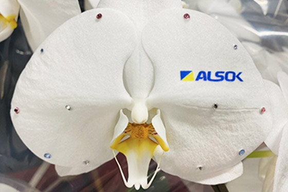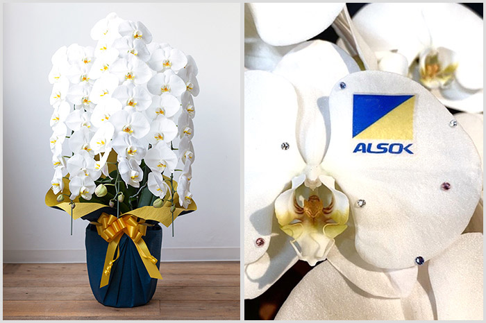 大切なお取引先へ贈る胡蝶蘭の花びらに企業ロゴを入れることも可能です。