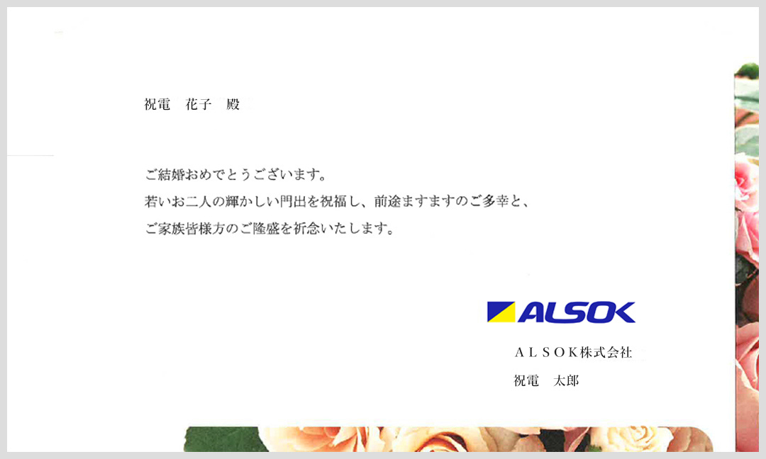 ※ALSOKのロゴマークが入っている部分には、「お客様のロゴマーク」が入ります。お客様の電報にALSOKのロゴマークが入ることはありません。