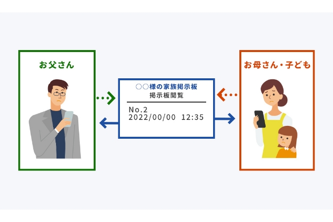 家族間でご利用いただける簡易掲示版を使ってやり取りを行っていただけます。