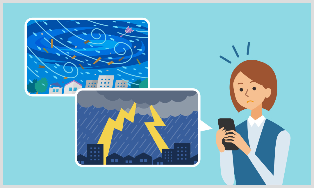 登録されたメールアドレスに、気象、災害情報(地震情報、注意報・警報、天気予報、台風情報、火山情報、津波情報)を配信するサービスです。情報入手手段として有効利用できます。