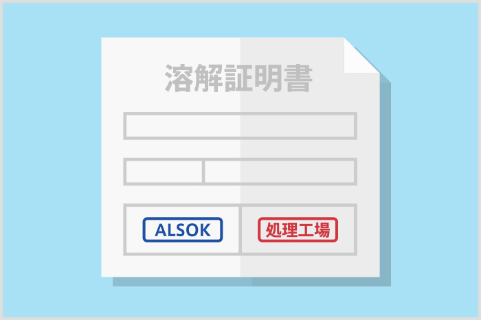 溶解証明書はALSOKと処理工場の二社が押印した証明書です。