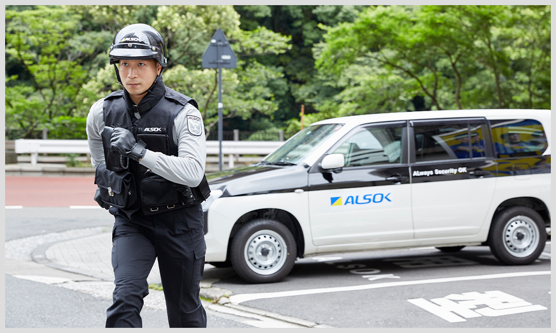 非常通報ボタンで救援を求められた時、火災、ガス漏れおよび防犯センサーが異常をキャッチした時には、安全のプロであるALSOKのガードマン(警備員)が、昼夜休日を問わず、迅速に駆けつけます。