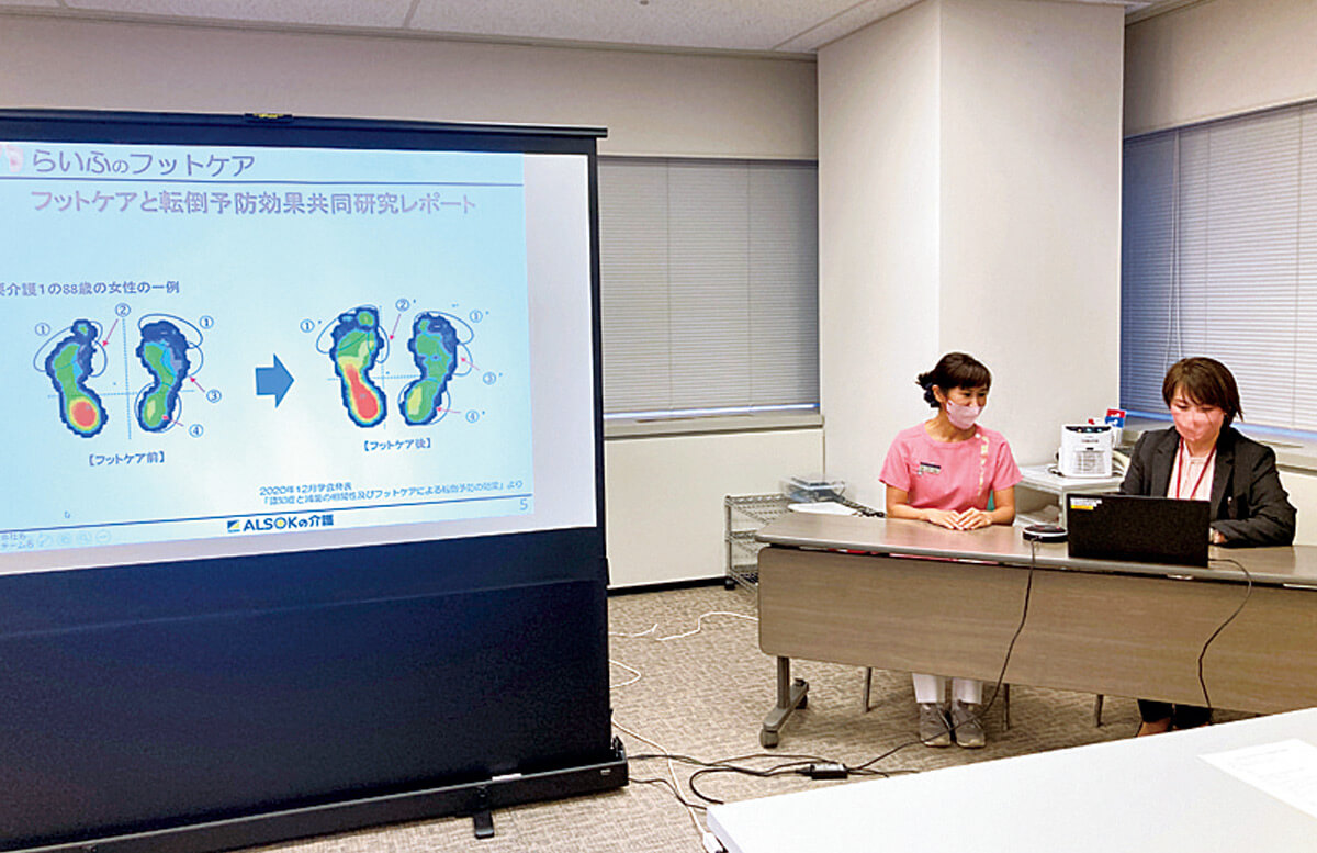 ALSOKでは年に一度、「品質向上発表会」を開催。各社のサービス品質向上、業務効率化に関する日々の取り組み事例を紹介し、共有しています。「アミカの郷亀有」は2023年、ALSOKグループ介護品質向上発表会で最優秀賞を受賞しました。