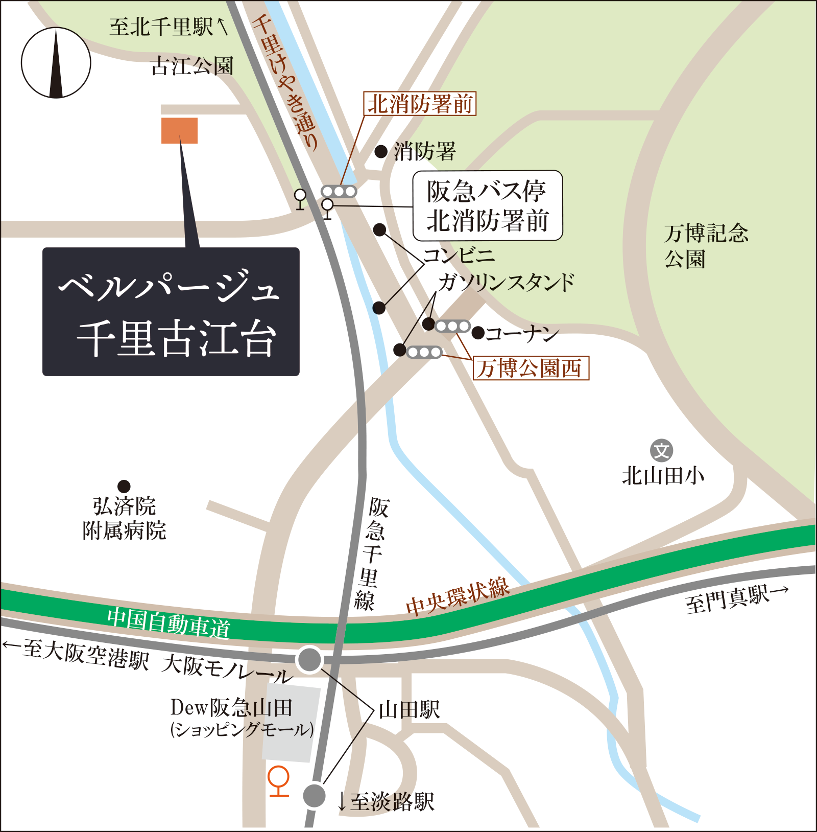 ①阪急電鉄北千里線「山田駅」より徒歩約16分