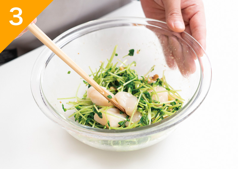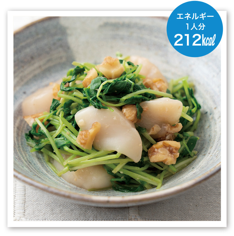 帆立と豆苗のくるみ味噌和え
