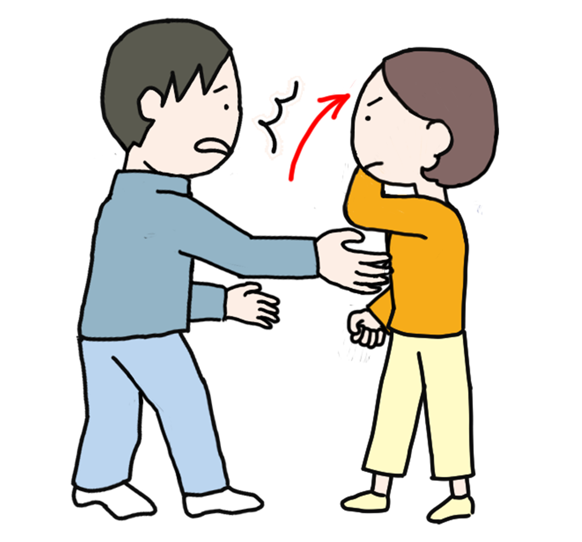 手が外れたら、両手で思いきり相手の体(胸部など)を突き飛ばして逃げます。