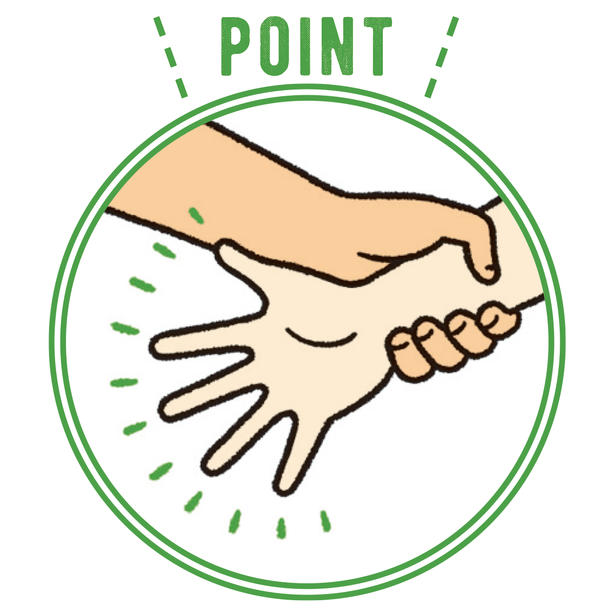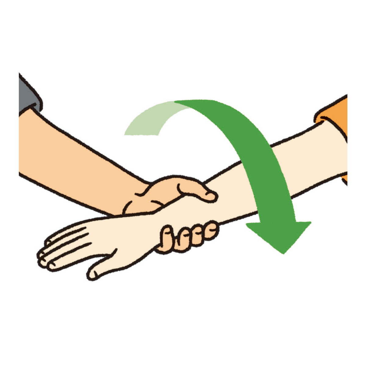 肩から腕全体と手首を内側に回し、手の甲を上に向けるようにする。