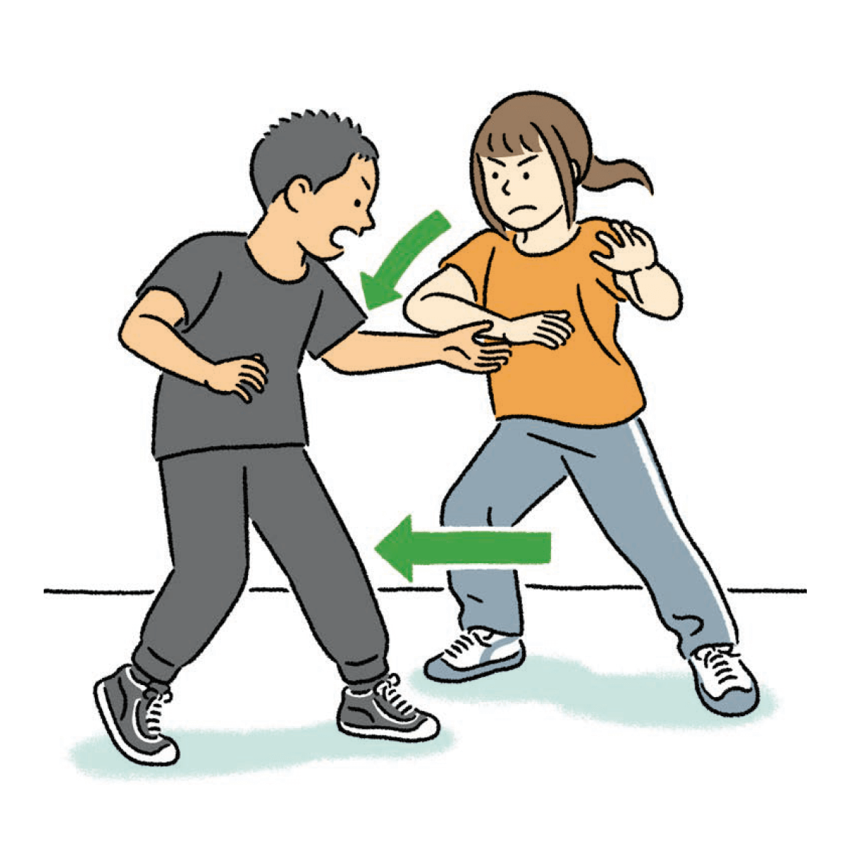 離脱できても、相手からの追加攻撃に備え、両手を上げて顔を守りながら離れる。