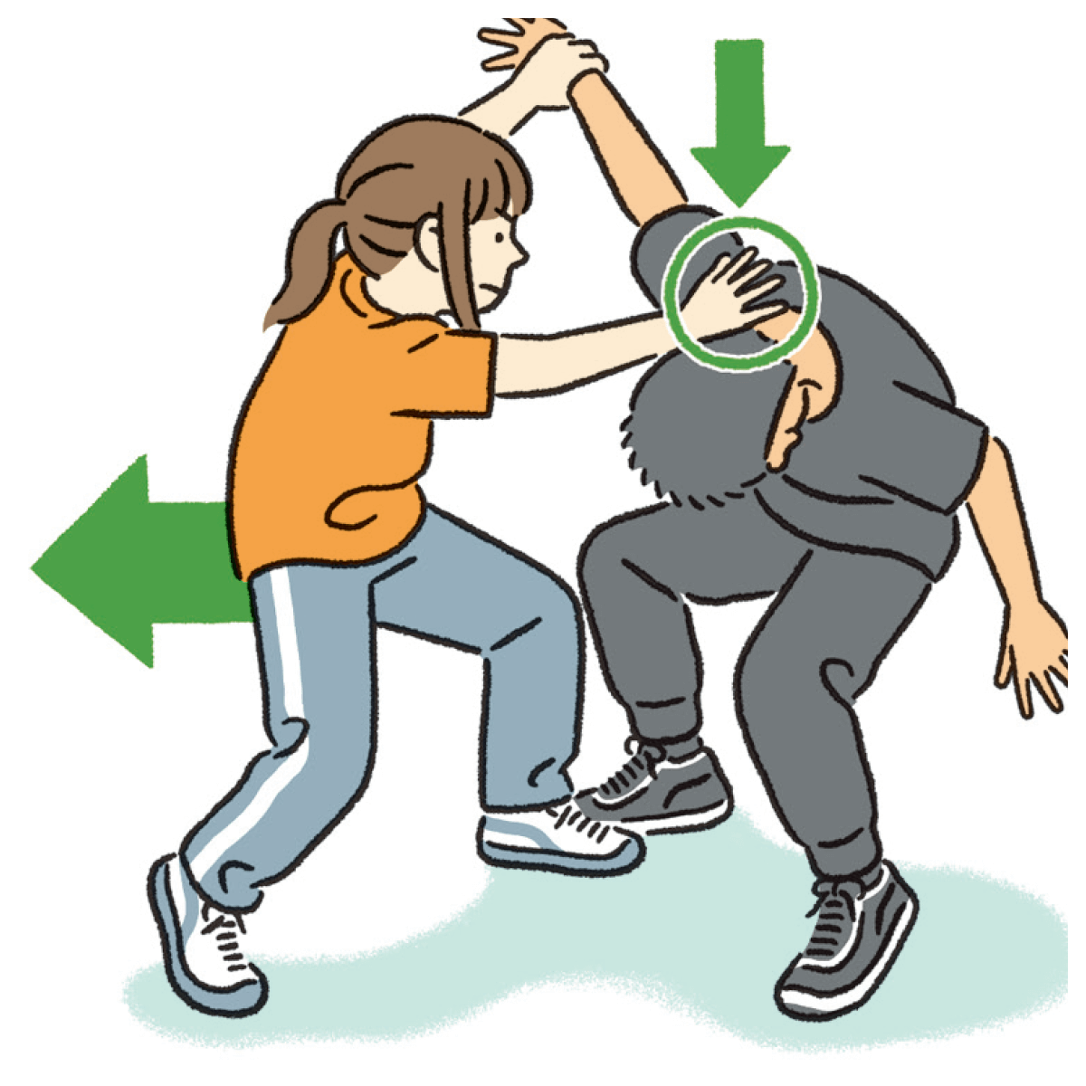 このとき、相手の足を思いっきり踏むと、さらに効果的。