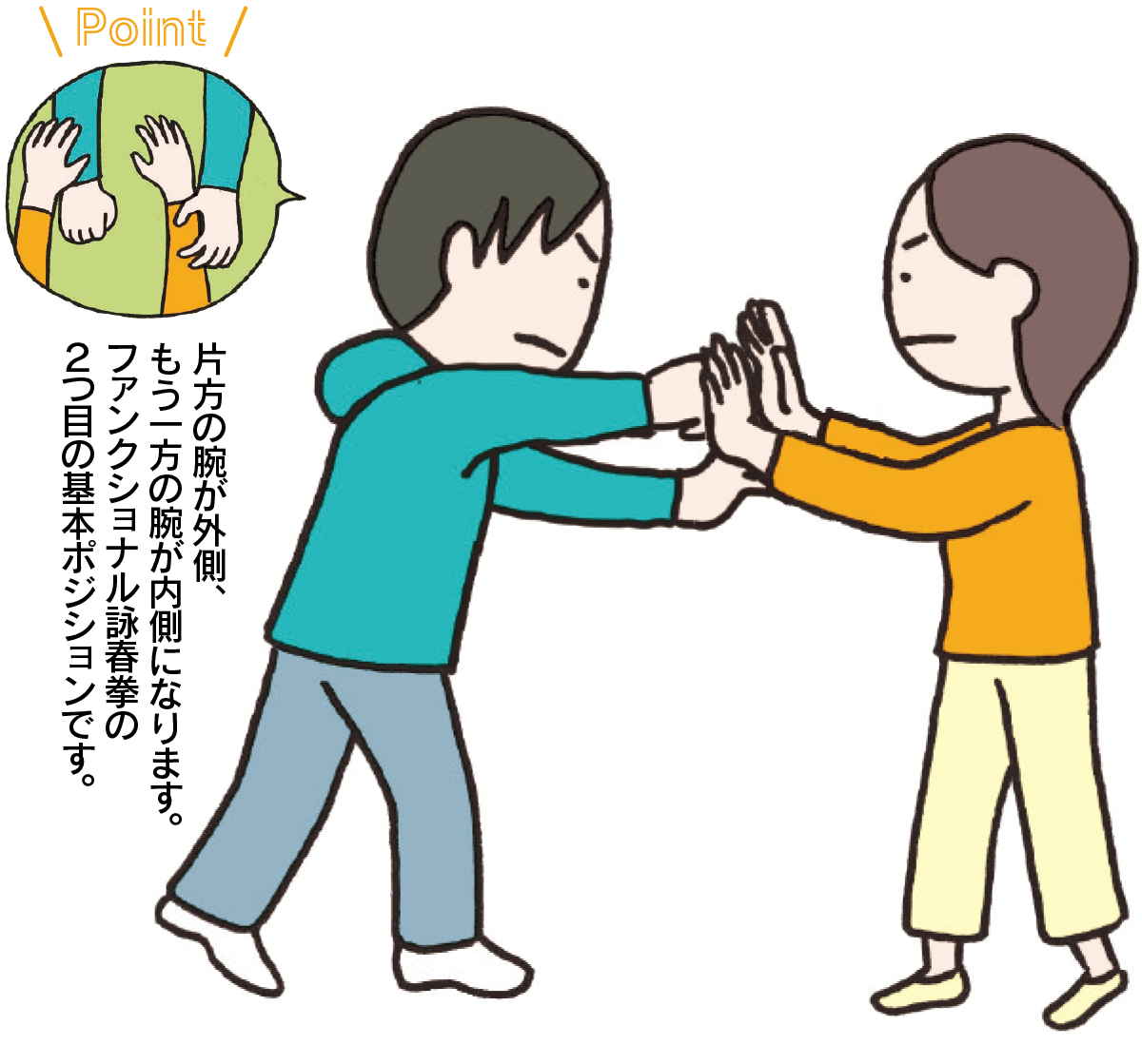 すばやく腕を出したり、相手を突き飛ばしたり。とっさの防衛をスムーズに行えるよう、肩回りの動きを練習しましょう。