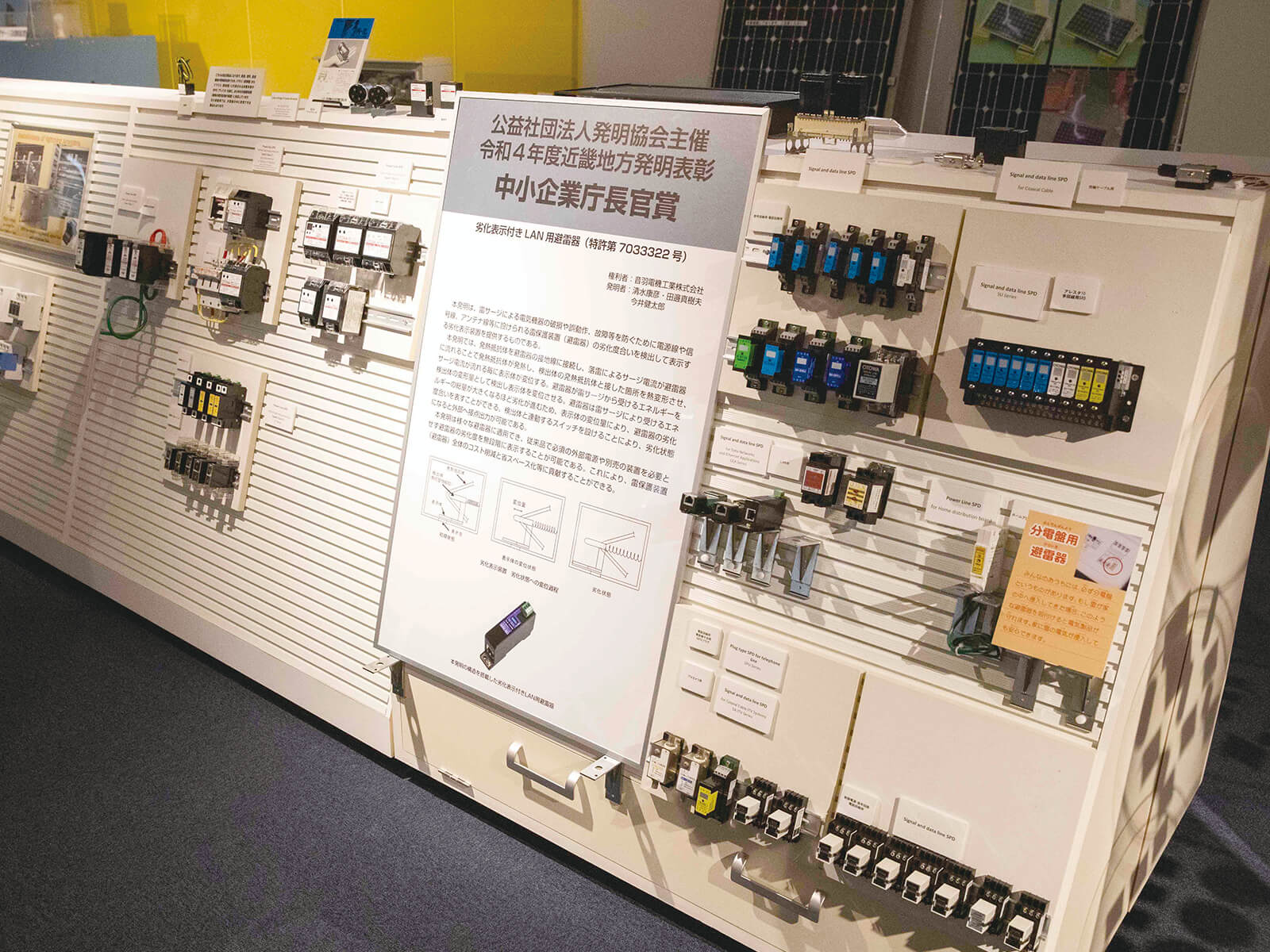 受賞した「劣化表示付きLAN用避雷器」の展示。
