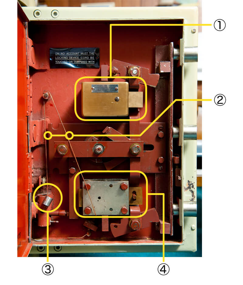 厚さ40㎜の鉄の扉の奥に鍵の心臓部がある。