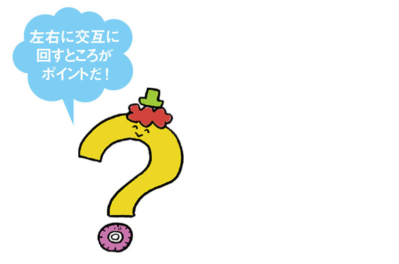 特徴が2つあります。回す方向が左右交互であること。回転数が4,3,2,1とひとつずつ減っていくこと。