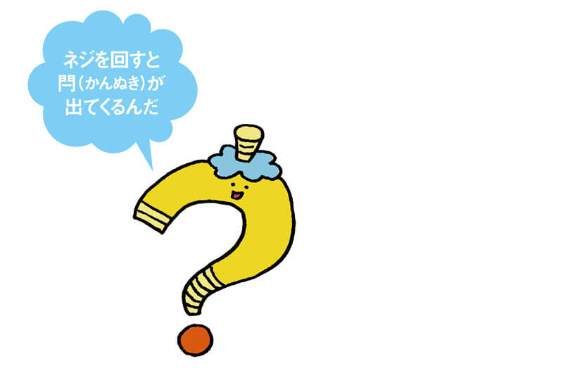 合い鍵の先は直径8ミリほどのネジになっています。一方、錠の筒の右側には鍵穴が。穴をのぞくと、奥のほうまで、きれいにネジ山が切られています。ネジは差し込むほうを”オスネジ”、穴があいているほうを”メスネジ”と呼びます。つまりこの錠では合い鍵がオスネジ、錠本体がメスネジです。このメスネジが閂(かんぬき)と連動しているのです。