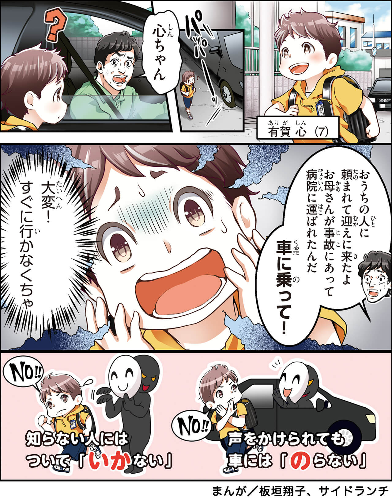 帰宅途中の寄り道など、子供たちが一度家を出てしまえば、親の目はなかなか行き届きません。 普段から「知らない人にはついて行かないように!」と教えられていても、興味のある話題を持ちかけられたことでそのままついて行ってしまい犯罪に巻き込まれるケースが少なくありません。 例えば、「~へと言われたらどうする?」と聞いてみるなど、声かけへの対応方法を練習しておきましょう。