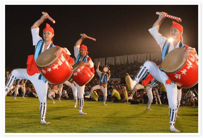 「エイサー」は本土の盆踊りにあたる沖縄の伝統芸能のひとつ。旧盆の夜、各地域の青年会ごとに踊りながら練り歩く。いまではほとんどの青年会が大太鼓と締め太鼓を中心とする「太鼓エイサー」を披露する。「太鼓エイサー」は沖縄県中部がもっとも盛んな地域と言われている。旧盆の翌週末には、沖縄市で県内最大の夏祭り「沖縄全島エイサーまつり」が開催され、各地域のエイサーが披露される。