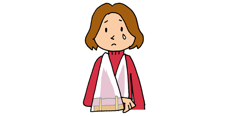 添え木で腕を固定して、ポリ袋の持ち手の横を切り首から吊るします。
