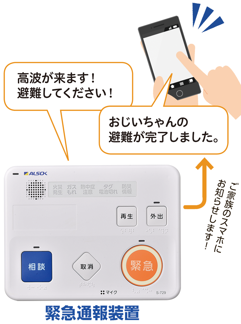メールに不慣れな高齢者の方も、避難情報を逃しません。