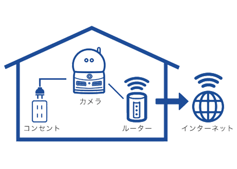 接続から利用開始までは3ステップ!電源、インターネット環境、カメラIDとパスワードだけでかんたんに接続設定ができます。Wi-Fiにも対応しているので、設置場所も選びません。