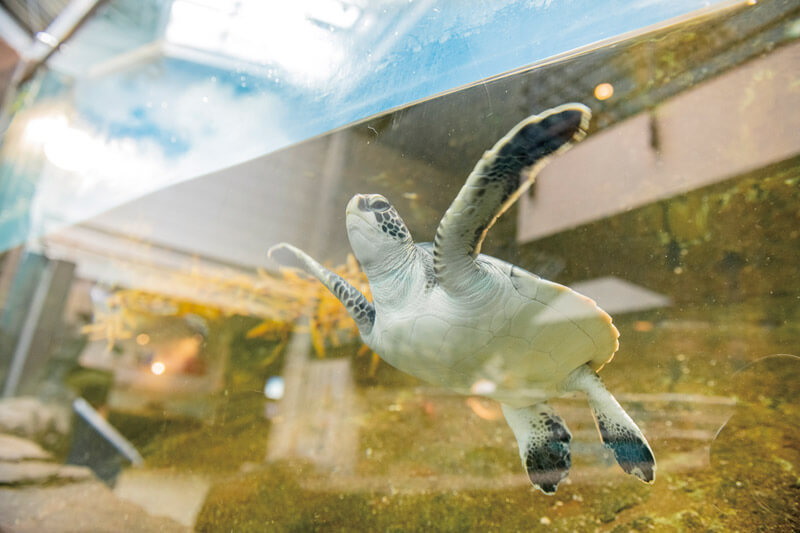 3歳までの子ガメが泳ぐ姿を間近で確認できる。