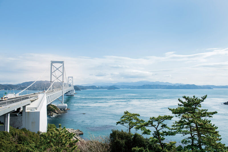 本州から四国への大動脈に架かる大鳴門橋。およそ2000mにわたる長さで淡路島と鳴門を結ぶつり橋の壮観な姿は、国立公園である一帯の景観とみごとに調和。もちろん、渦潮の存在も、ここが唯一無二の存在である理由のひとつです。