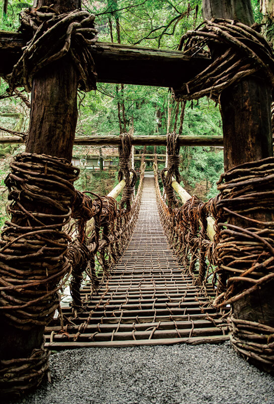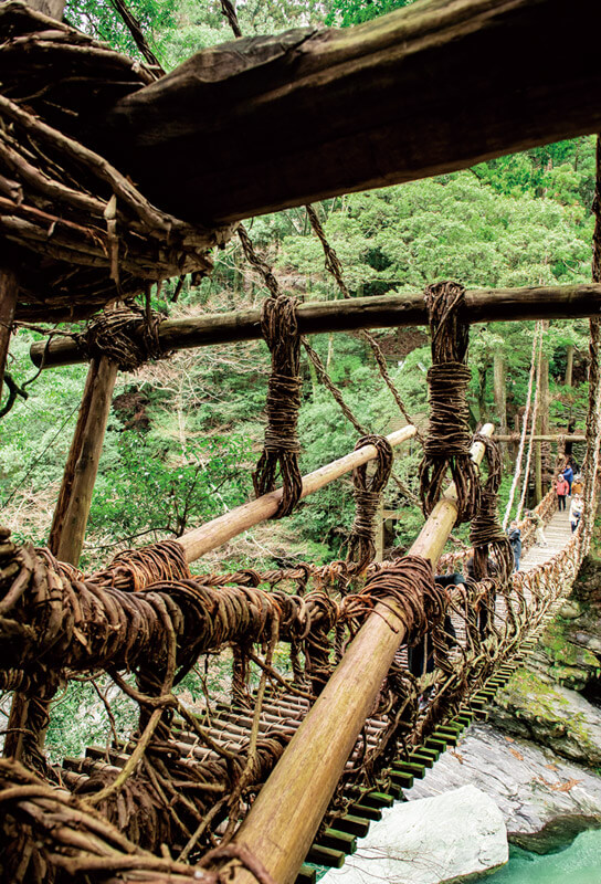 1900年代には13カ所で架けられていたという「かずら橋」は、祖谷に自生するシラクチカズラを編んで作ったもの。山間部の住民の生活には必要不可欠な存在でした。