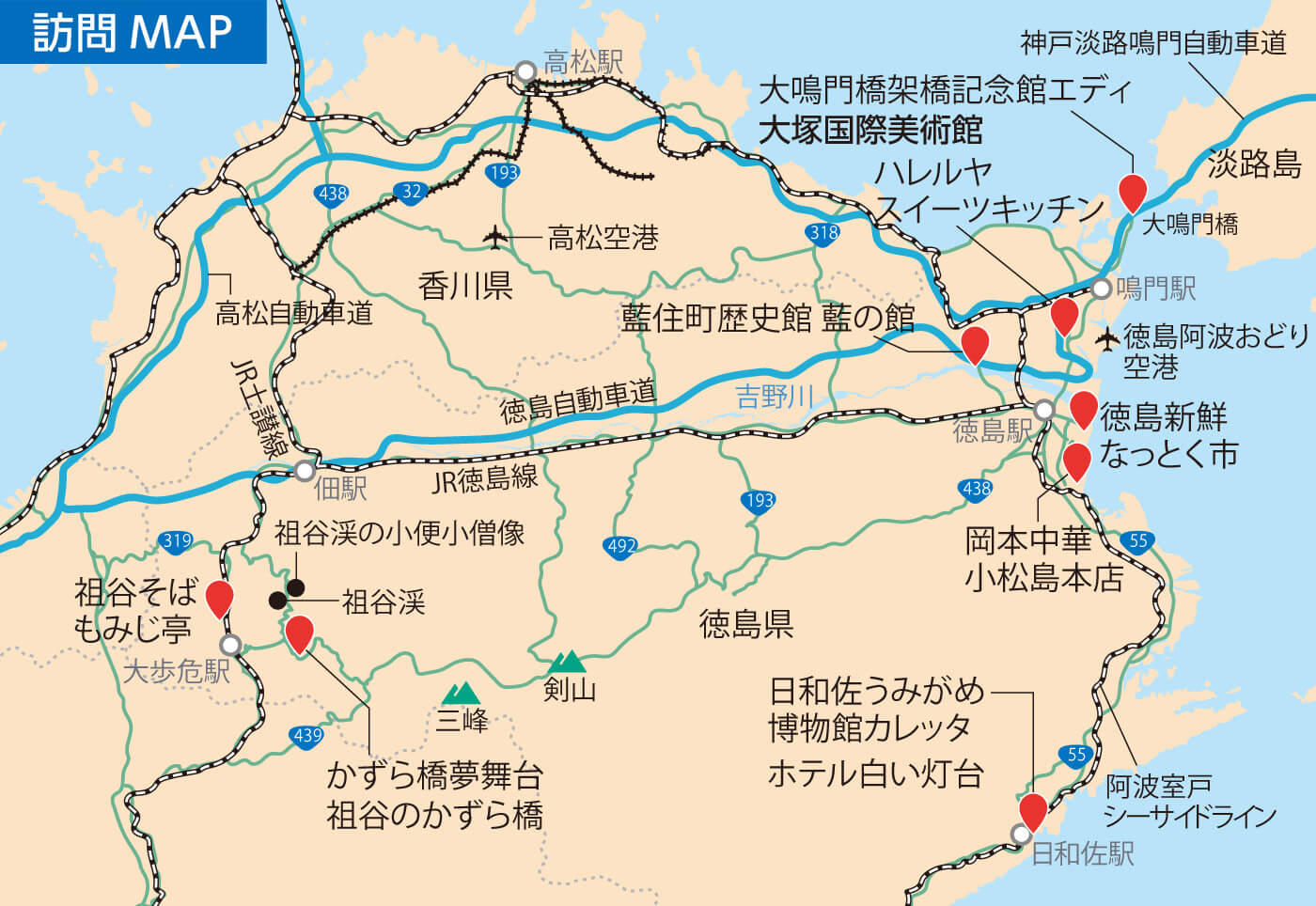 徳島市とその周辺では、山海の恵みと文化に触れるさまざまな場所に出合えます。