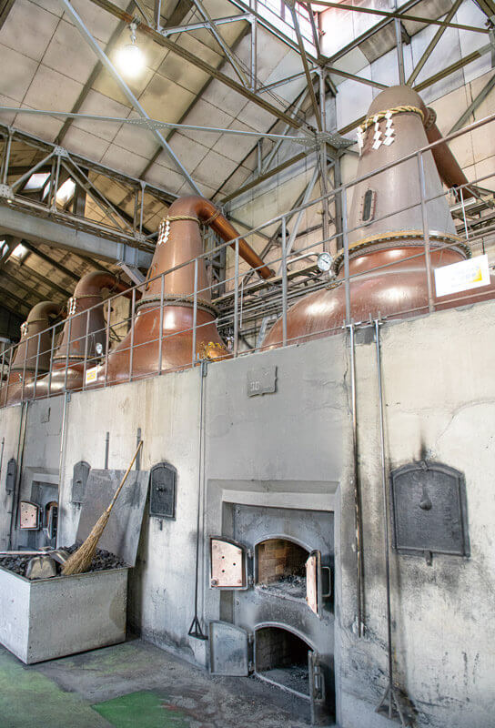 国内ではほとんど見られない、石炭直火蒸溜が行われている。
