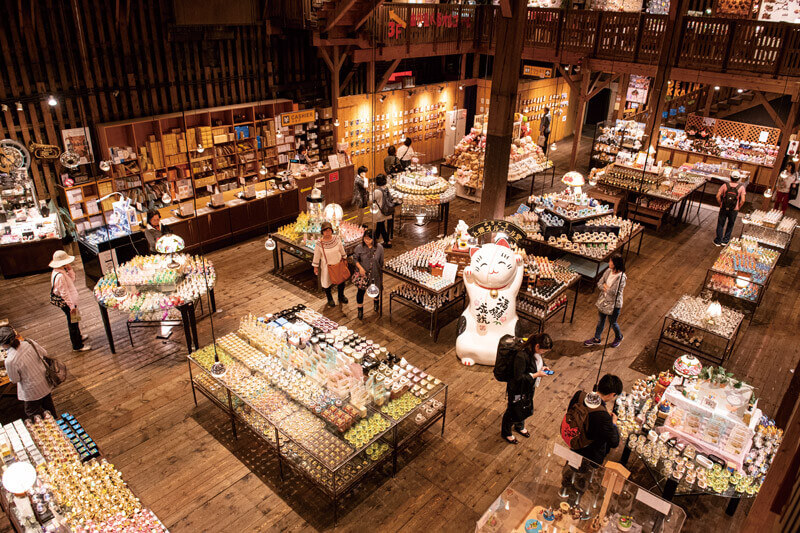 「北一硝子 三号館」は、明治24(1891)年に建てられた漁業用倉庫を利用した店舗。身欠きニシンを運河へ積み出していたトロッコの線路が、今も残っています。石油ランプの製造から始まり、現在はテーブルウェアなど多くのオリジナル商品が人気です。