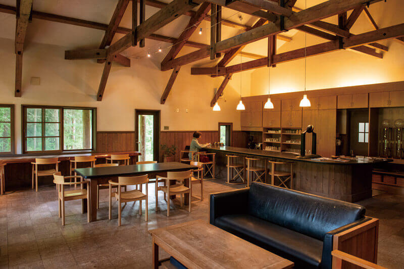 本館の内部は総ケヤキ造りで、吹き抜けの眺めも壮観。