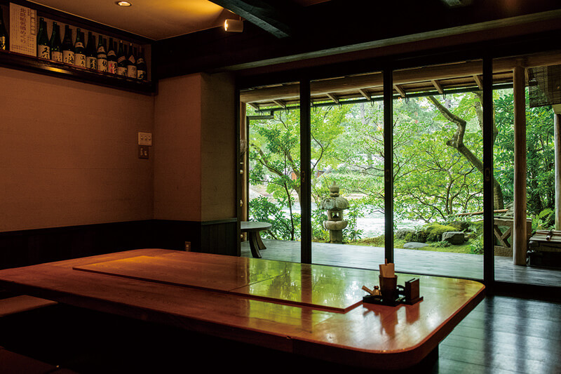 天橋立に一番近い旅館、対橋楼内の食事処。天橋立運河や松並木を眺めながら、地元で獲れた魚介類を使った丼ものやコース料理を味わえる。一番人気の「海鮮丼」(1,400円・税別)は海の幸がたっぷりのった豪華な一品。