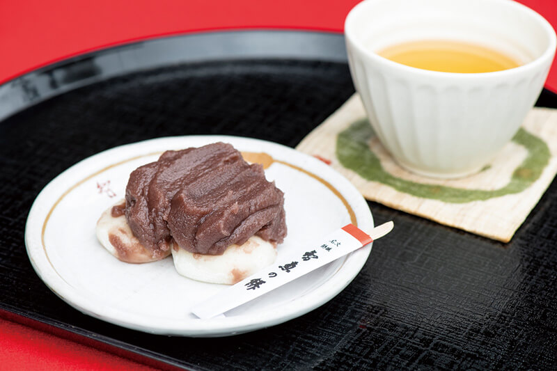 柔らかい餅に甘さ控えめのあんこがのった上品な味わいは、旅の疲れを吹き飛ばしてくれる。