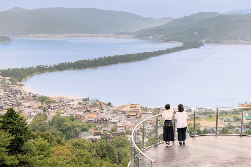 約60m²の円形のスカイデッキや床面がガラス張りの空中廊下、スカイテラス、展望レストランなどがあり、「昇龍観」や「斜め一文字」とも呼ばれる天橋立の風景を存分に楽しめる。「股のぞき」発祥の地としても有名。