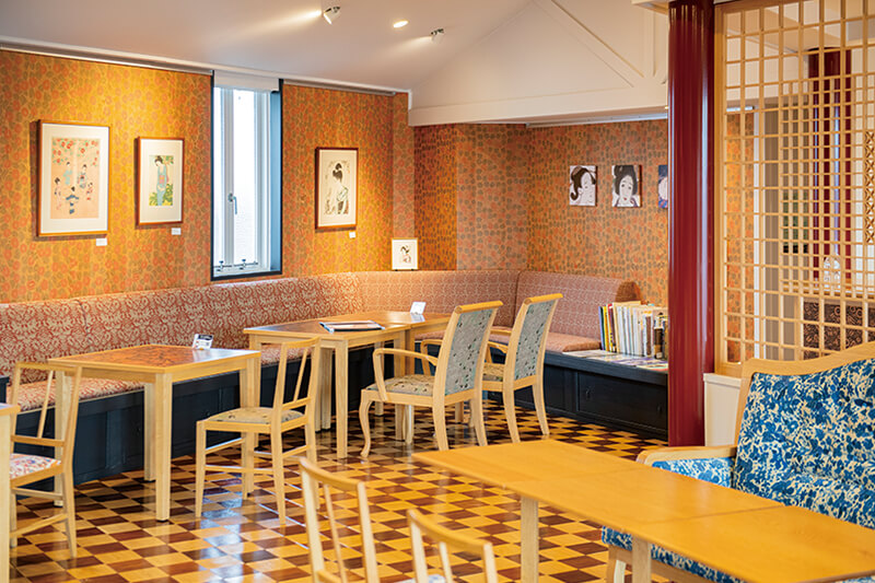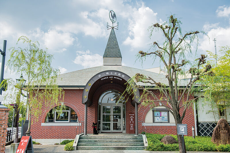 画家の竹久夢二は瀬戸内市邑久町(おくちょう)本庄(当時は邑久郡本庄村)で生まれ育ちました。名勝後楽園の外苑に建つ「夢二郷土美術館 本館」では、夢二の作品を数多く展示しています。年に4回の企画展では夢二が作詞をし、表紙を描いたセノオ楽譜「宵待草」など、詩人やデザイナーとしての仕事も見られます。さらに面白い展示が「港屋絵草紙店」。夢二デザインの千代紙や版画、帯などを販売していたお店を再現しており、夢二のデザインが庶民の生活に寄り添っていたことを感じられます。第6展示室&ミュージアムショップ&カフェ「art café夢二」では、岡山市出身のデザイナー、水戸岡鋭治氏がデザインした家具に囲まれ、夢二の木版画を眺めながら食事やお茶を楽しめます。 瀬戸内市には、夢二が暮らした茅葺屋根の生家「夢二生家記念館」や夢二が設計したアトリエ兼住居「少年山荘」もあるので、足をのばしてみるのもおすすめです。