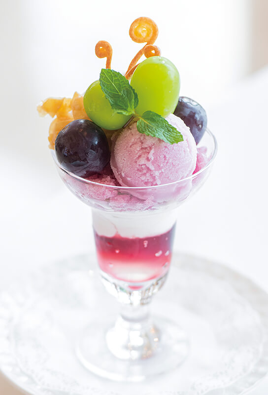 写真は2020年9月1日~10月31日に提供していた岡山県産「葡萄パフェ」(単品2,000円、税・サービス料込)。