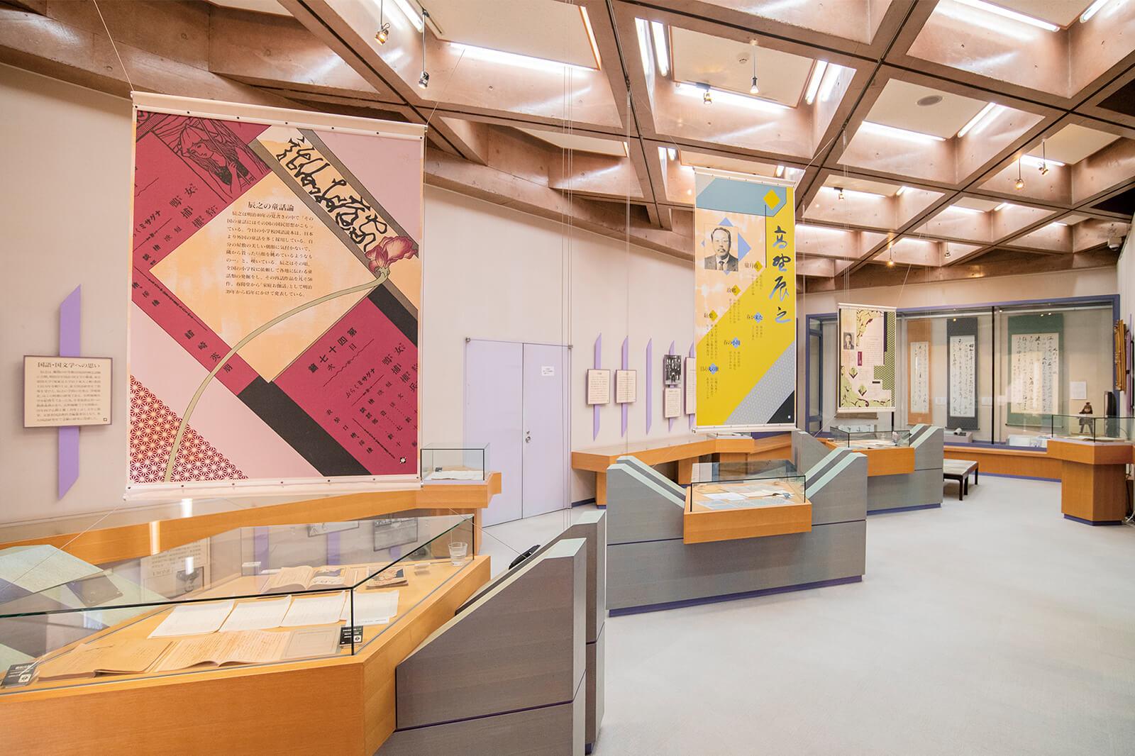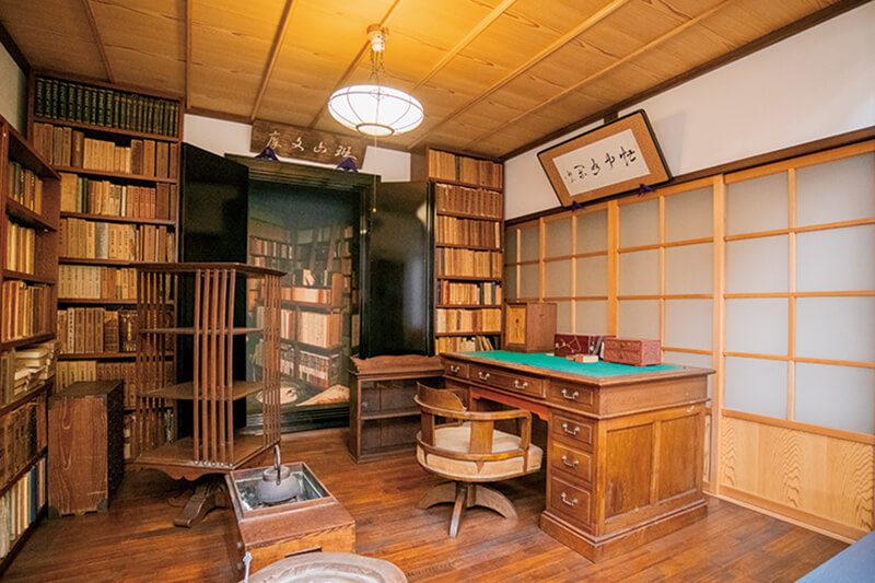高野の代表的な著書や手書き原稿などを展示。高野が東京の代々木に建てた書庫「斑山文庫」も再現している。高野は自身を斑山と名乗り、その名にちなんで「斑山文庫」と称した。