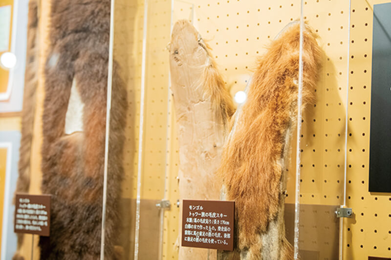 野沢温泉といえば日本のスキー史とともに歩んできた地です。そこでゲレンデ下の「日本スキー博物館」へ。日本や海外のスキーに関する貴重な資料が膨大に展示されています。とくに目を引くのが、木製のスキー板。明治44年に日本にスキーが伝来した当時、スキー板はケヤキなどの一枚板で作られていました。また、面白いのがモンゴルのトゥワー族が使っていたスキー板。狩りの際に音を出さずに獲物に近づけるように滑走面に毛皮が付いています。スキーはもともと生活の手段だったという歴史を感じました。