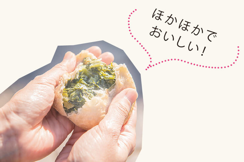 長野で食べ歩きといったらおやき。野沢菜がたっぷり。