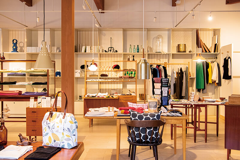 北欧インテリアショップ「NATUR」。スウェーデンから買い付けた家具や地元の作家とコラボした商品を置いている。